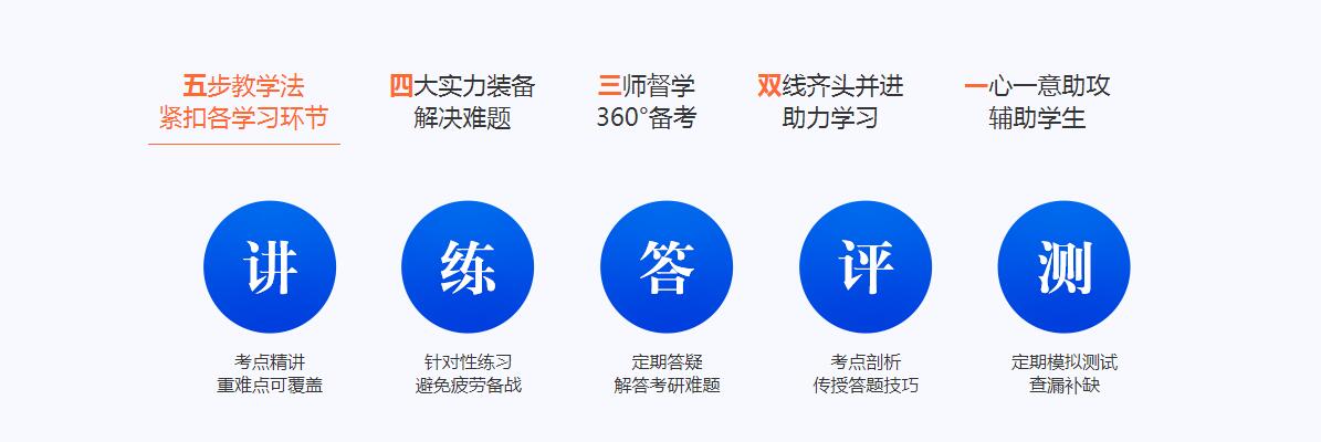 文都考研全年集训营培训机构凭借丰富的教学经验和对历年试题的准确把握,针对考研英语、政治、数学、管理类联考、专业课,从基础-强化-进阶-冲刺,将教师讲授的知识化作系统解题能力,有效良好的教辅体系,帮助每一位考研学员全力以赴,全方面有效的提高考研成绩。